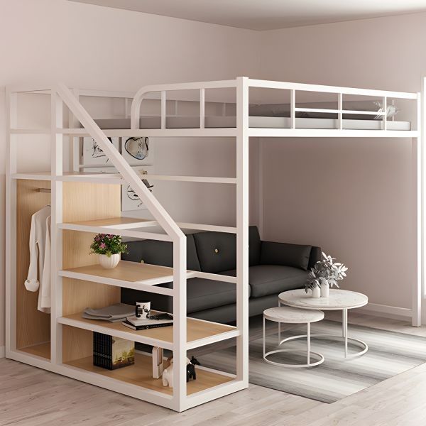 Кровать-чердак белая с полками №196